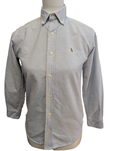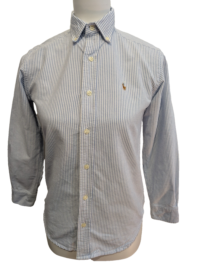 Women's Ralph Lauren Shirt Size 10 Blue Striped Long Sleeve Cotton XXS XS