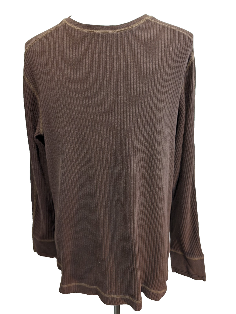Pull vintage Tommy Hilfiger au design unique combinant mailles gaufrées et côtes. Coloris marron chaleureux, logo brodé sur la manche. Coupe généreuse. Note : présence d'un micro accroc discret en bas du vêtement, documenté en photo.